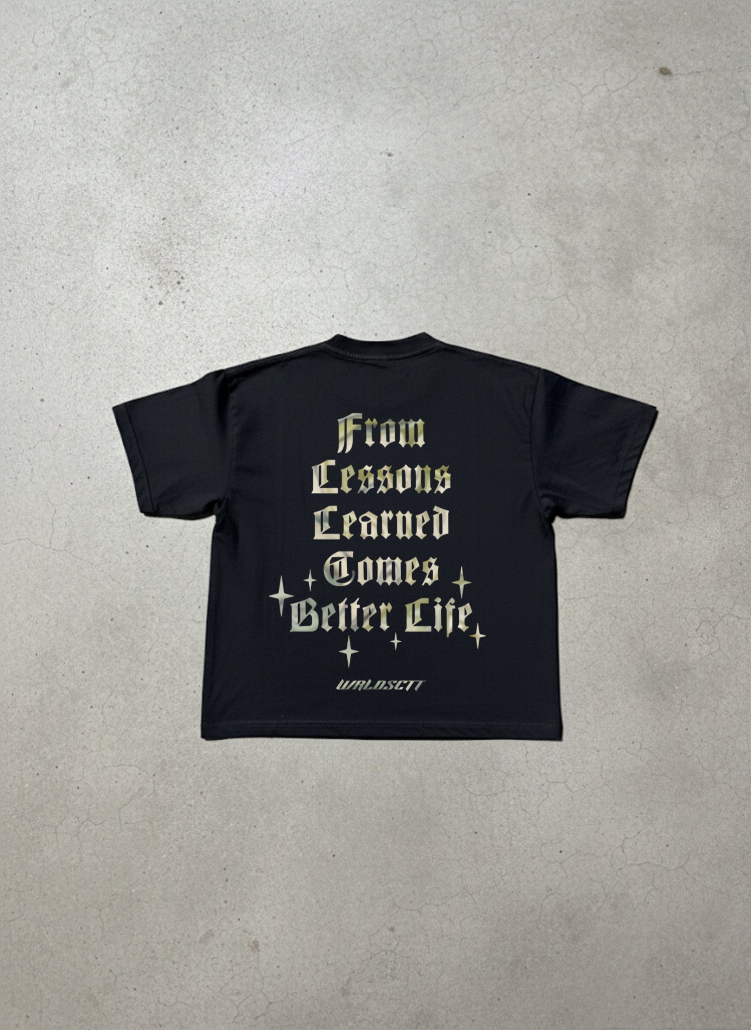 Introducing the first-ever WRLDSCTT drop: a boxy, cropped shirt that symbolizes growth. It’s your reminder that every mistake carries a lesson, and every lesson leads to a Better Life.